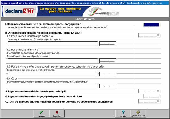 Ingreso anual neto del declarante, cónyuge y/o dependientes económicos