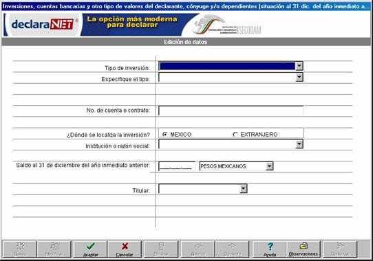 Inversiones, cuentas y otro tipo de valores del declarante, cónyuge y/o dependientes